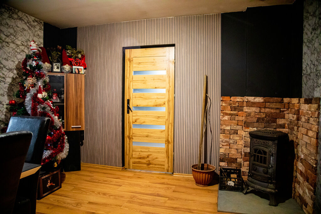 salonie znajduje się piec, który może pełnić funkcję